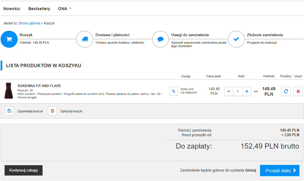 Towar w koszyku w cenie generowanej za pomocą formuły JS