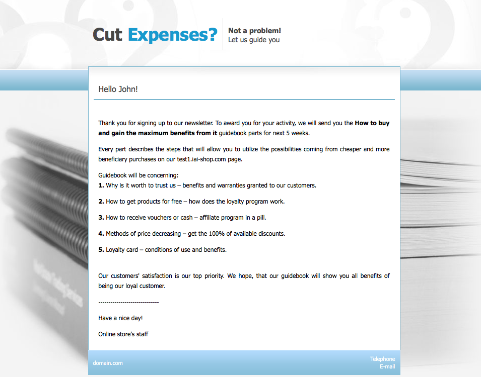 Triggered messages are very important addition to every on-line store. There are multiple applications of this tool. For example they allow to obtain feedback, award active buyers or send guides.