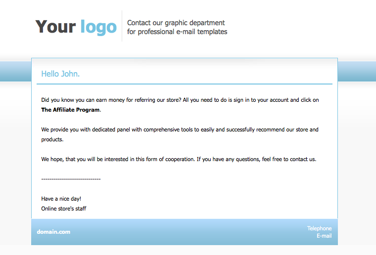 It can be sent as e.g. request for feedback on ordered products or an invitation to like the company on Facebook fanpage. This tool can also guarantee an easy contact with users, that had never ordered anything from you.
