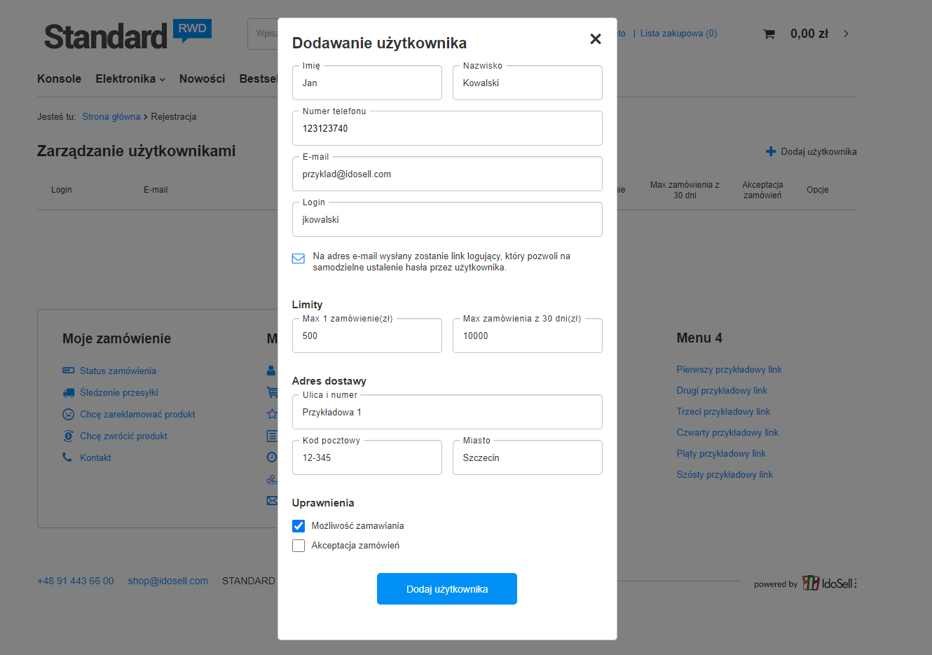 Pozwala stworzyć subkonta klienckie dla użytkowników, którzy mogą złożyć zamówienie, z potrzebą akceptacji użytkowników z wyższym uprawnieniem.