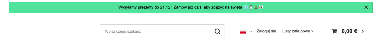 Możesz dostosować pasek informacyjny do wyglądu sklepu, zmieniając jego kolor, czcionkę, czy pozycję wyświetlania. Dostępna jest także opcja zaszycia w pasku linka przenoszącego do odpowiedniej kategorii. Co więcej, możesz umieścić w nim także emoji, które podkreśli styl komunikatu.