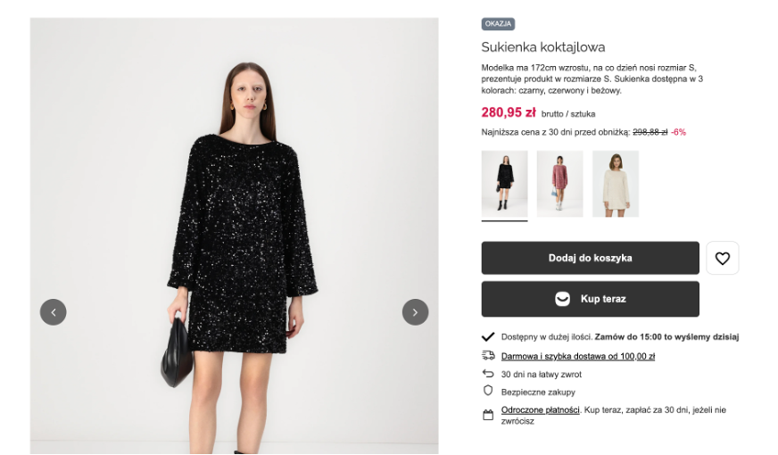 Obsłużyliśmy parametr o kontekście specjalnym “Kolor” w danych strukturalnych, dzięki czemu warianty kolorystyczne produktów będą lepiej interpretowane nie tylko przez wyszukiwarki, ale również poprzez agentów AI. Kolor jest jednym z najważniejszych czynników, które wpływają na decyzje zakupowe.