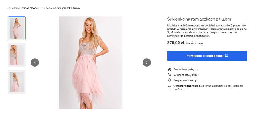 To proste usprawnienie poprawia czytelność interfejsu i eliminuje niejasności dla użytkowników, co bezpośrednio przekłada się na wyższy CTR oraz większą liczbę zapisów na powiadomienia o ponownej dostępności.