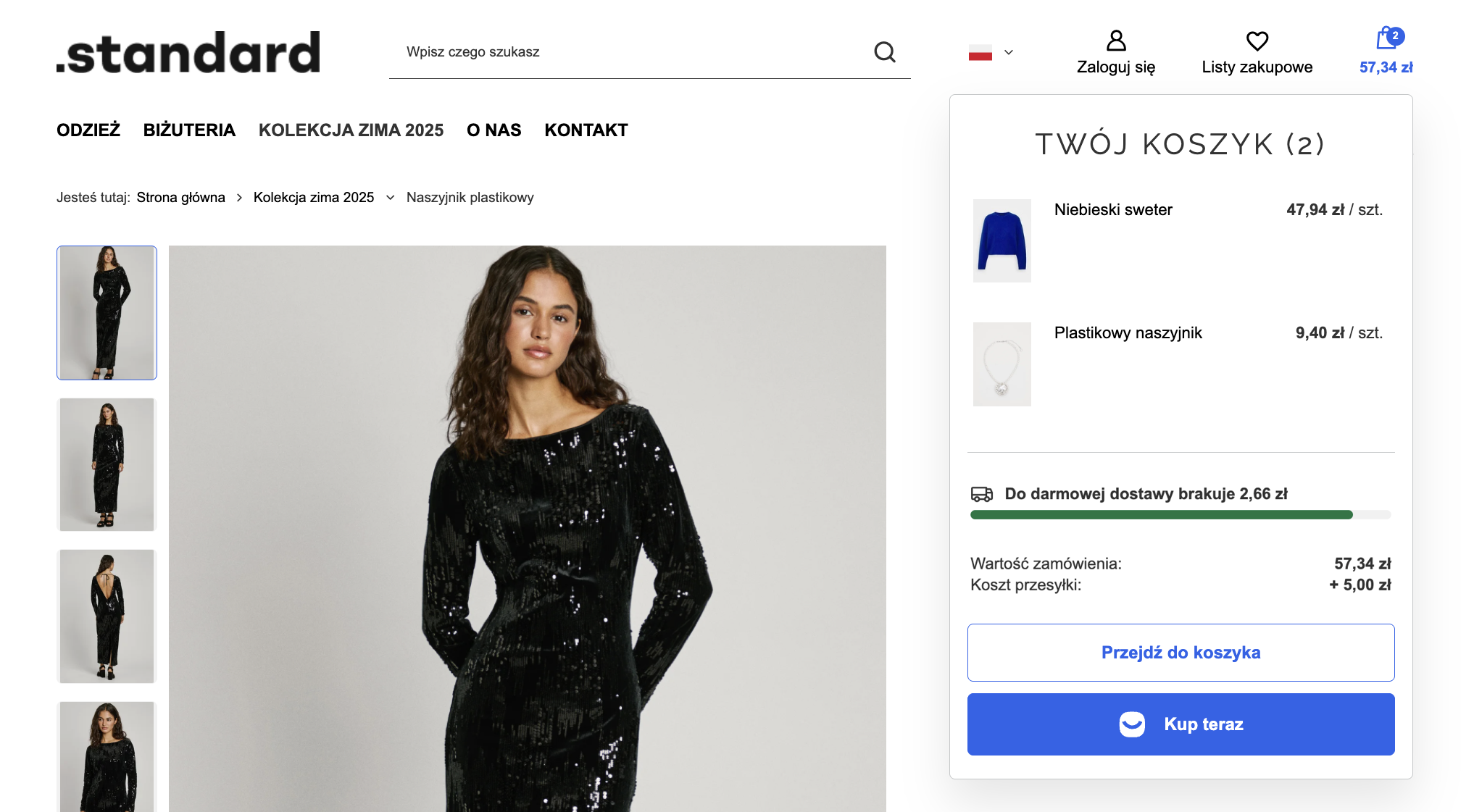 Nowy podgląd koszyka w szablonach B2C to nie tylko odświeżony design, ale przede wszystkim jeszcze lepsza funkcjonalność i rozwiązania zwiększające konwersję. Podgląd koszyka wyświetla teraz graficzny pasek przedstawiający, ile klientowi brakuje do osiągnięcia progu darmowej dostawy – pasek wyświetla się w sklepach oferujących darmowe dostawy Smile. Dodatkowo, umożliwiliśmy szybki zakup całego koszyka za pośrednictwem naszego błyskawicznego Smile Express Checkout! Dzięki temu złożenie zamówienia jest teraz możliwe z każdej strony sklepu – w kilka sekund!