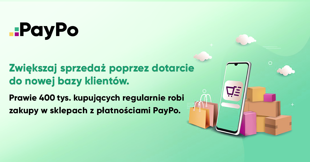 PayPo to płatności odroczone, które cieszą się ogromną popularnością wśród prawie 400 tysięcy konsumentów. Dzięki bezpośredniej współpracy IdoSell i ( PayPo, wszystkie sklepy używające IdoPay mogą uruchomić tę usługę zaledwie jednym kliknięciem i odkryć korzyści płynące z dodania nowej metody płatności do swojej oferty.