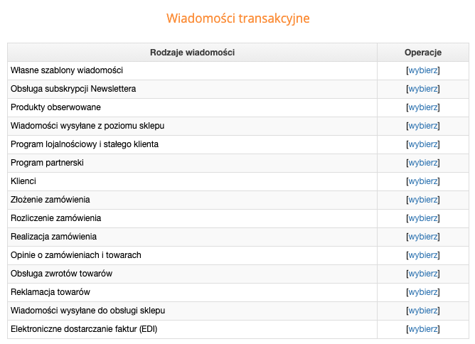 Usunęliśmy wszystkie wiadomości dotyczące aukcji, gdyż od dłuższego czasu wysyłanie wiadomości do klientów pochodzących np. z Allegro jest niezgodne z regulaminem tego serwisu. Nie ma więc uzasadnionej potrzeby, aby szablony tych wiadomości transakcyjnych była nadal możliwe do skonfigurowania.