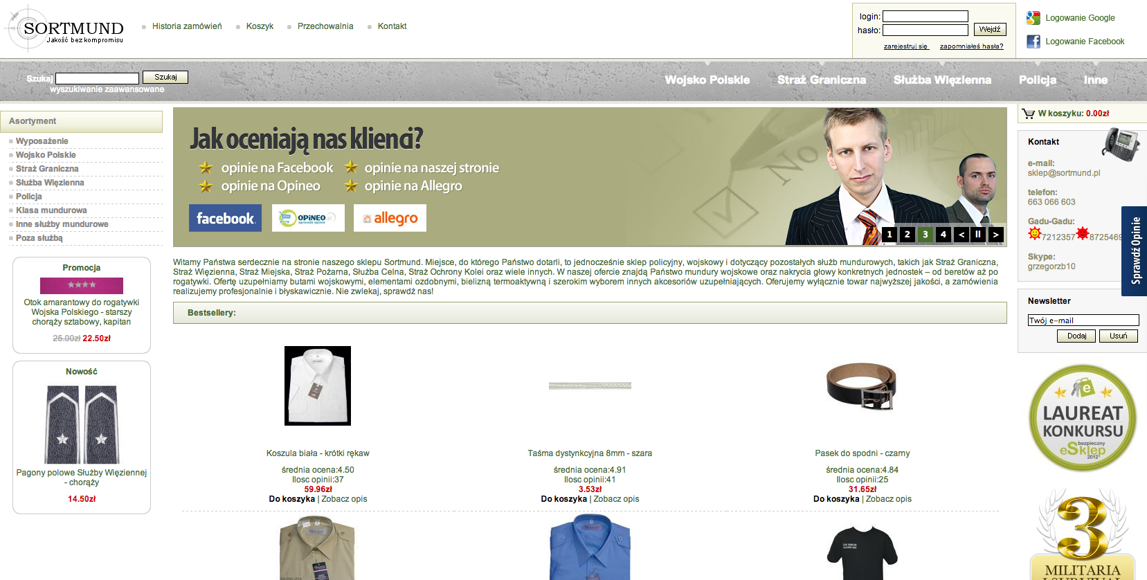 Kontynuując cykl ekskluzywnych wywiadów z właścicielami sklepów internetowych, opartych na usłudze SaaS od IdoSell, mamy przyjemność zaprezentować rozmowę z Panem Grzegorzem Bastą. Sklep Sortmund z niemałym sukcesem sprzedaje odzież dla służb mundurowych. Co więcej, zgarnął prestiżowe nagrody kolejno w 2012 i 2014 roku.