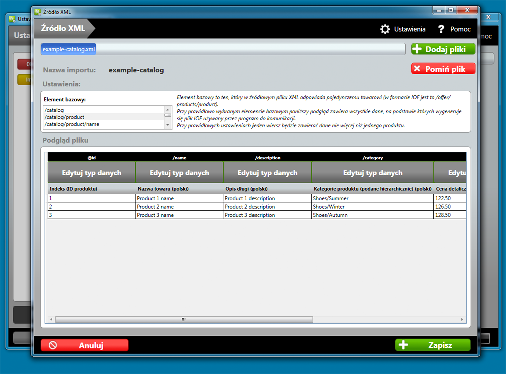 Jeżeli chcesz zintegrować się z dostawcą/hurtownią, która nie korzysta z oprogramowania IdoSell, należy upewnić się czy oferuje ona dostęp do oferty w jednym z formatów obsługiwanych przez IdoSell Downloader. Jeżeli tak, pobierz i zainstaluj IdoSell Downloader, a następnie skorzystaj ze scenariusza Dodaj ofertę. Dzięki specjalnemu mechanizmowi mapowania, skonfigurujesz pliki XML i CSV, aby zaimportować towaru a następnie je synchronizować.