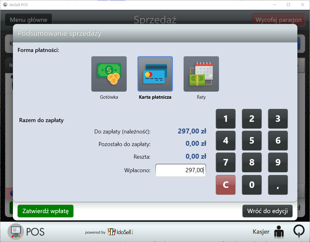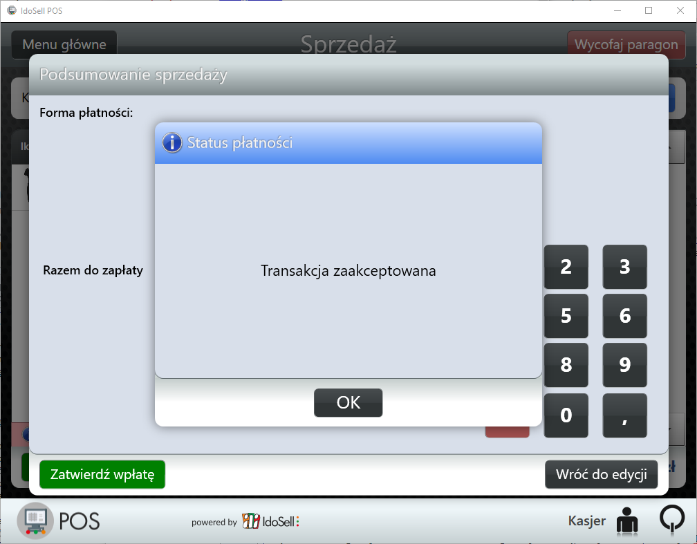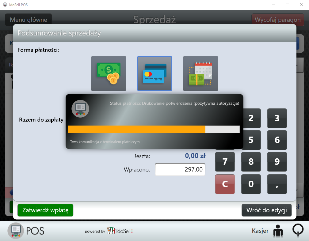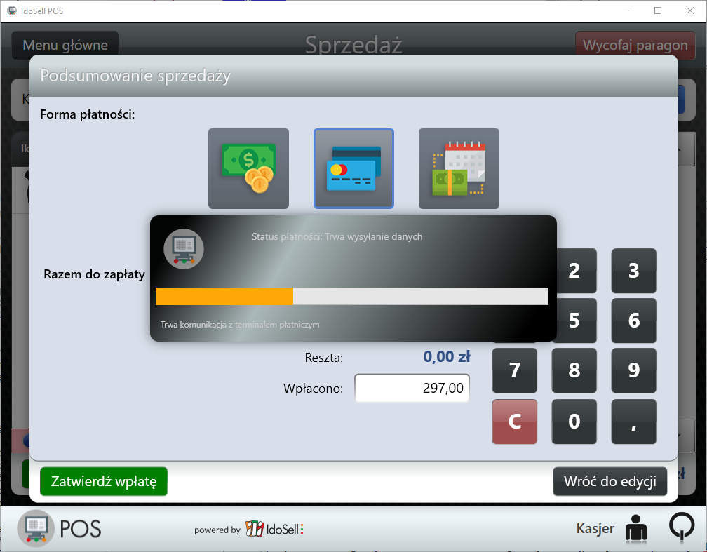 Proces sprzedaży z użyciem karty płatniczej i zintegrowanego terminala