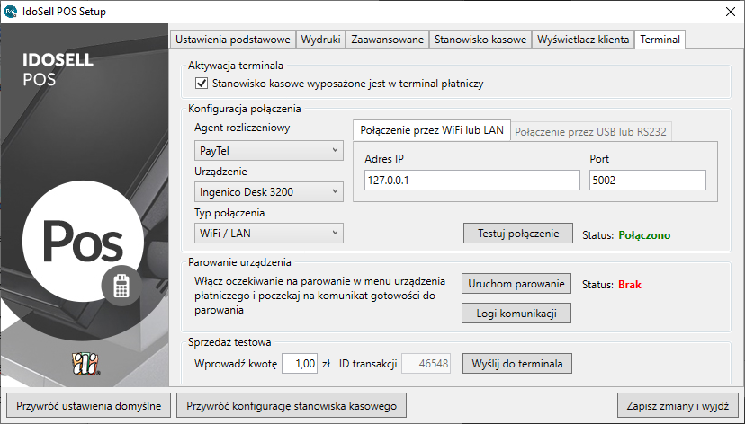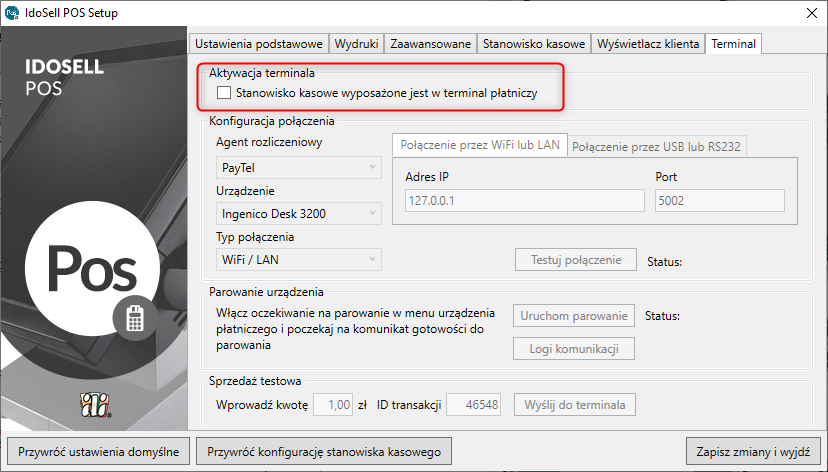 -> w sekcji "Aktywacja terminala" zaznacz checkbox "Stanowisko kasowe wyposażone jest w terminal płatniczy"
