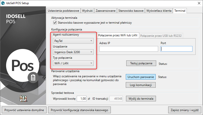 -> Wprowadź adres IP terminala płatniczego - jak uzyskać adres terminala - sprawdź w instrukcji terminala