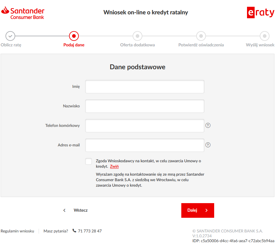 Jeśli chcesz porozmawiać z Przedstawicielem Santander Consumer Bank SA o szczegółach oferty i nawiązać z Bankiem współpracę, skontaktuj się pod numerem 71 358 23 40 (opłata zgodna z taryfą operatora) lub pisząc na adres KontrahentHP@SantanderConsumer.pl