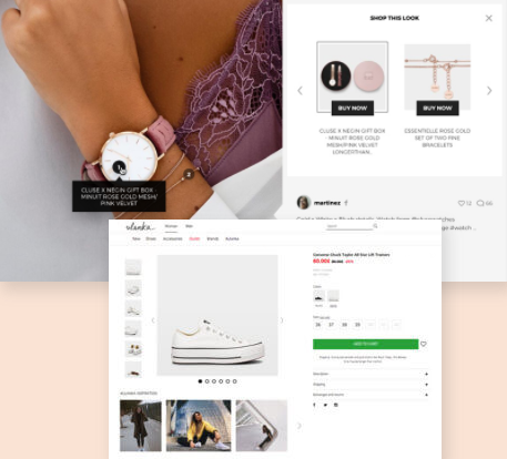 Zintegruj zdjęcia i filmy klientów z Twoim sklepem eCommerce, aby pokazać dokładnie to czego poszukują. Dzięki kategoriom i niestandardowemu tagowaniu, stworzysz nowy sposób kupowania, który będzie dla nich interesujący - zarówno w przeglądarce, jak i na urządzeniach mobilnych. Następnie, dzięki funkcjom takim jak Hotspots, dasz użytkownikom wyraźniejszy obraz tego, gdzie na każdym zdjęciu pojawiają się Twoje produkty.
