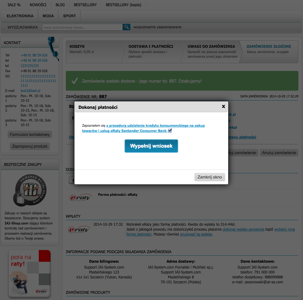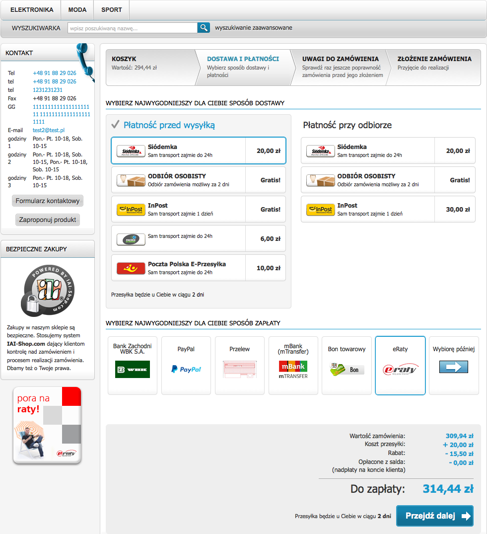 Szukasz sposobu na zwiększenie obrotów w swoim sklepie? Jak wskazują eksperci zajmujący się e-handlem, szeroki wybór metod płatności za zakupy jest jednym z kluczowych elementów decydujących o komercyjnym sukcesie sklepu. Teraz dzięki współpracy IAI-Shop.com i Santader Consumer Bank, Twoi klienci mogą skorzystać z dodatkowej formy płatności w postaci wygodnych zakupów ratalnych - eRaty.
