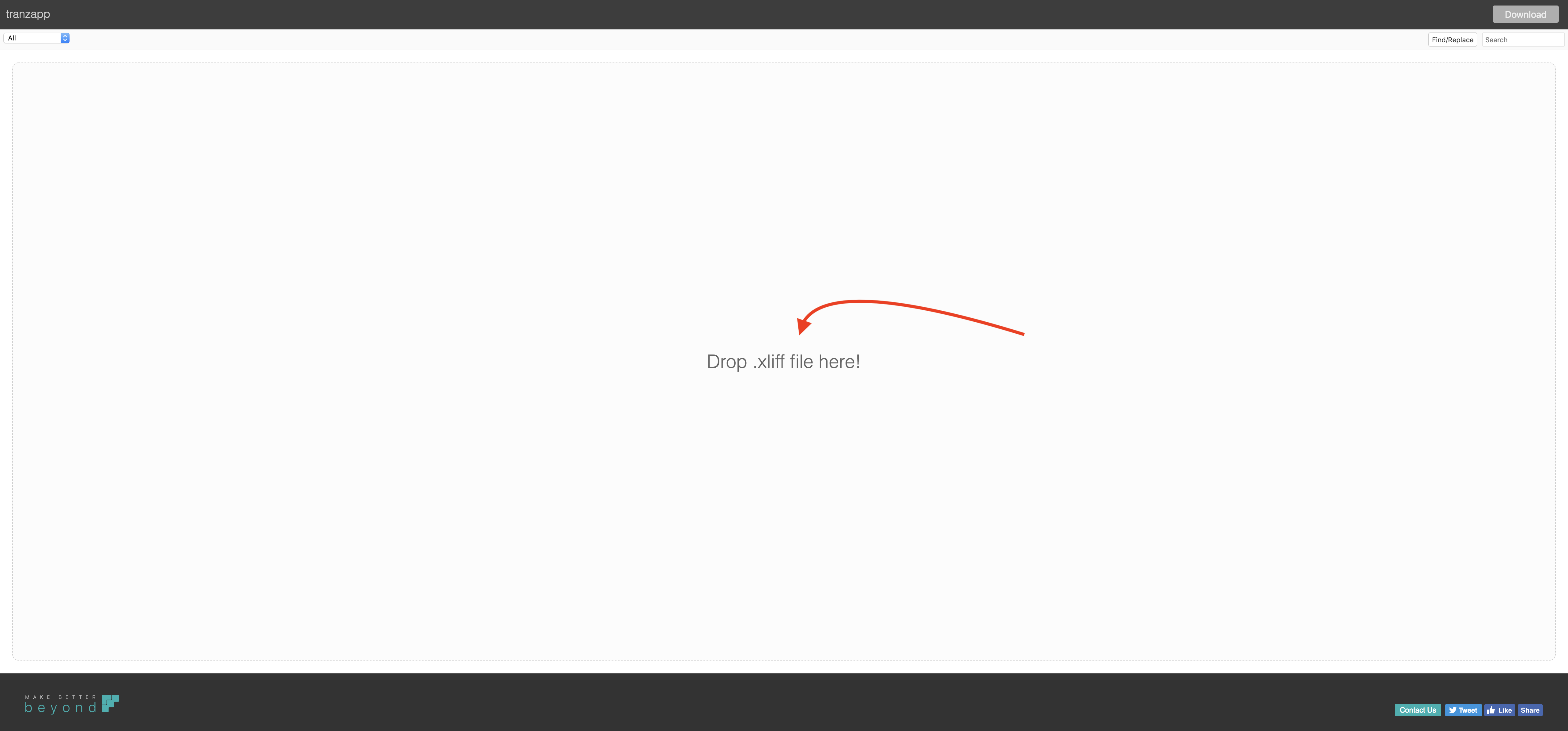 Aplikacja Tranzapp to bardzo proste w obsłudze i w pełni darmowe narzędzie dostępne online. Obsługuje wyłącznie pliki z rozszerzeniem XLIFF. Nie jest konieczna rejestracja, tłumaczenie tekstów można zacząć w każdej chwili. Aplikacja nie posiada rozszerzonych opcji, takich jak np. translator wspierający tłumacza, czy autokorekta. Obecnie jedyne dostępne dodatkowe opcje to możliwość filtrowania literałów.