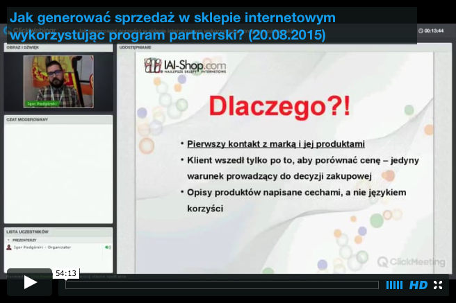 Jedno z najlepszych narzędzi do zwiększania zasięgu swojego sklepu internetowego a jednocześnie, zwiększania swoich przychodów. Na tym webinarze pokazujemy w jaki sposób skonfigurować wszystkie parametry, aby móc uruchomić Program Partnerskie w IAI-Shop.com