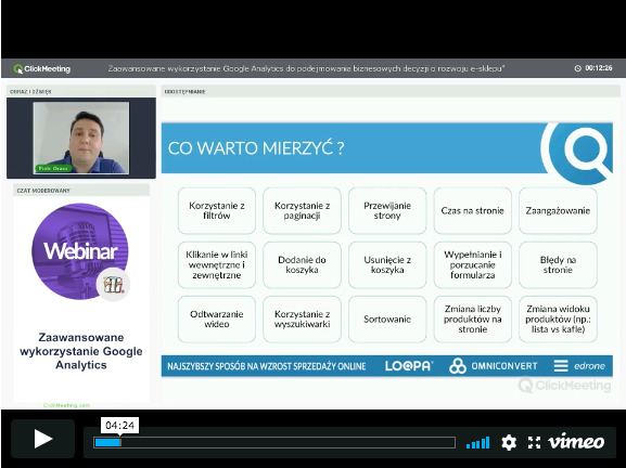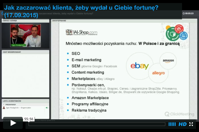 Pozyskanie ruchu na sklep internetowy nie stanowi dziś problemu. Trudniej jest zamienić pozyskany ruch na konwersje, a jeszcze trudniej przekuć go w realny zysk. Na nagraniu z webinaru pokazujemy w jaki sposób przekonać potencjalnego klienta, że trafił w odpowiednie miejsce i jakich narzędzi oraz technik używać, żeby był skłonny wydać u Ciebie pieniądze. Jak zatem oczarować klienta? Zapraszamy do obejrzenia nagrania z udziałem Pawła Fornalskiego.