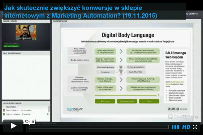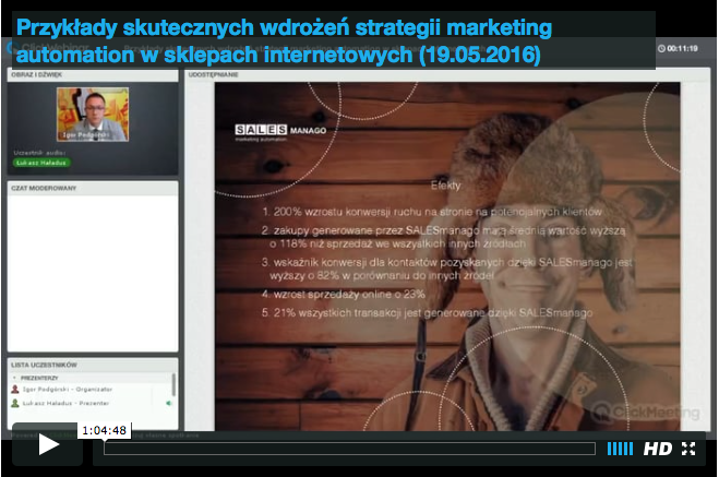 Specjaliści z SALESmanago przedstawiają na konkretnych przykładach jak wykorzystać potencjał automatyzacji marketingu do pozyskiwania i utrzymywania klientów w sklepach internetowych. Przykłady na panelu administracyjnym SALESmanago. Zapraszamy.