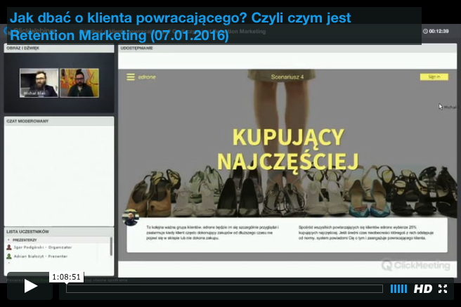 Czy wiesz, że średnio tylko połowa klientów ze zgodą na otrzymywanie wiadomości marketingowych dokonuje zakupów w sklepie internetowym? Na webinarze Michał Blak z edrone szczegółowo opowiedział w jaki sposób możesz skonwertować pozostałych 50% subskrybentów do zostania Twoim klientem.