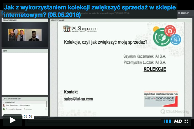 Sklep aukcyjny to narzędzie, które prezentuje na swoich stronach dokładnie te same towary, które umieściliśmy na aukcjach, dzięki czemu nie tylko jesteśmy w stanie zaprezentować je dokładnie jak chcemy, pozwalając na wyszukiwanie ich po parametrach, który uznajemy za istotne, ale także pozwalają na zorganizowanie obsługi posprzedażowej klientowi za pomocą czytelnego panelu w którym znajdzie informacje o statusie zamówienia, czy będzie w stanie dokonać zwrotu. Zapraszamy na kolejny ekspercki webinar. Przedstawiamy również konfigurację podstawowych parametrów sklepu aukcyjnego w panelu IAI-Shop.com