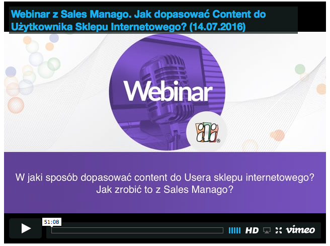 Na webinarze przedstawiamy jakich błędów się wystrzegać tworząc treści, reklamy na stronach swojego sklepu internetowego. Pokazujemy jak poradzić sobie z ustawieniem panelu i reguł w SALESmanago. O co dbać i jak wykorzystywać udogodnienia jakie daje użytkownikowi integracja IAI-Shop.com i SALESmanago.