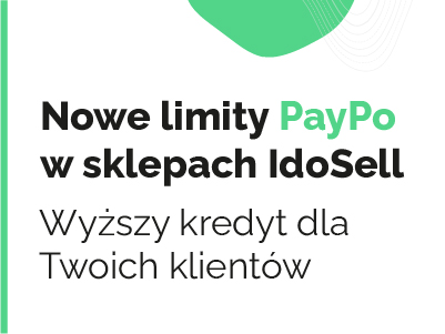 Nowe limity płatności odroczonych PayPo w sklepach IdoSell. Nawet 2 tys. zł kredytu dla Twoich klientów Klienci PayPo, korzystający z płatności odroczonych, mogą już korzystać z wyższego maksymalnego limitu zakupowego, który wzrósł do 2 tys. złotych. Dzięki temu będą mogli wydać w twoim sklepie więcej, ... Przeczytaj wpis