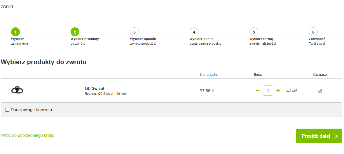 • Wskazuje które dokładnie towary chce zwrócić i w jakiej ilości
