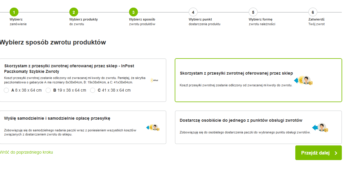 ostatnim krokiem jest wydrukowanie automatycznie uzupełnionego formularza zwrotu i jego podpisanie, oraz wydrukowanie etykiety zwrotnej. Twój klient ma już wszystko co jest potrzebne do nadania przesyłki zwrotnej.