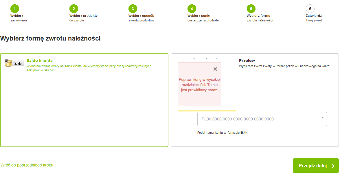 • Wybiera formę zwrotu należności