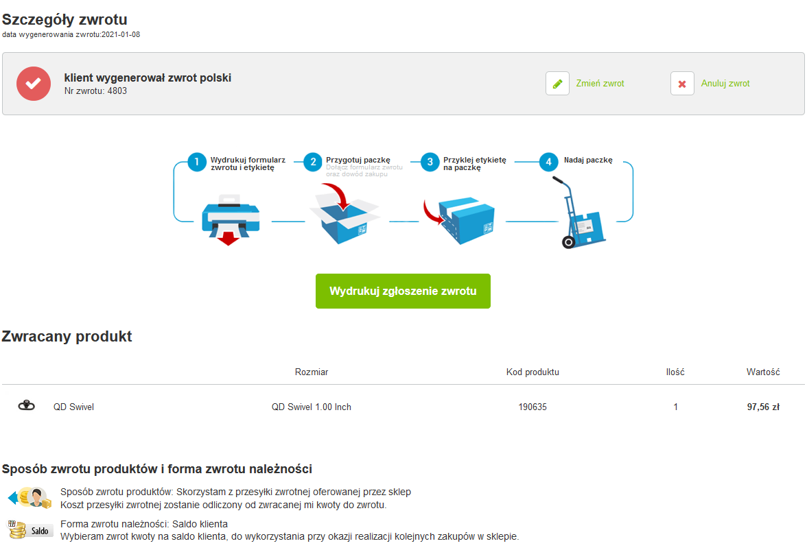 Tworzenie zwrotu przez klientów Twojego sklepu