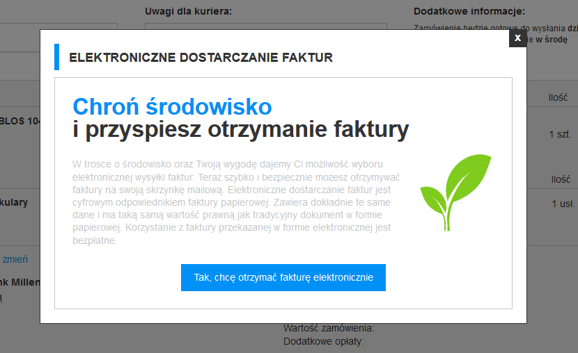 Zwróć uwagę, że wysyłanie faktur drogą elektroniczną, to także pozytywny wpływ na ochronę środowiska - dlatego warto je w ten sposób dostarczać do klientów.
