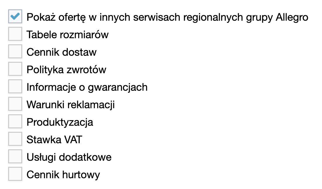 Po jej zaznaczeniu każda nowa wystawiana oferta będzie zgłaszana także do serwisu czeskiego. Jeżeli spełni wymagania, pojawi się automatycznie także w serwisie Allegro.cz.