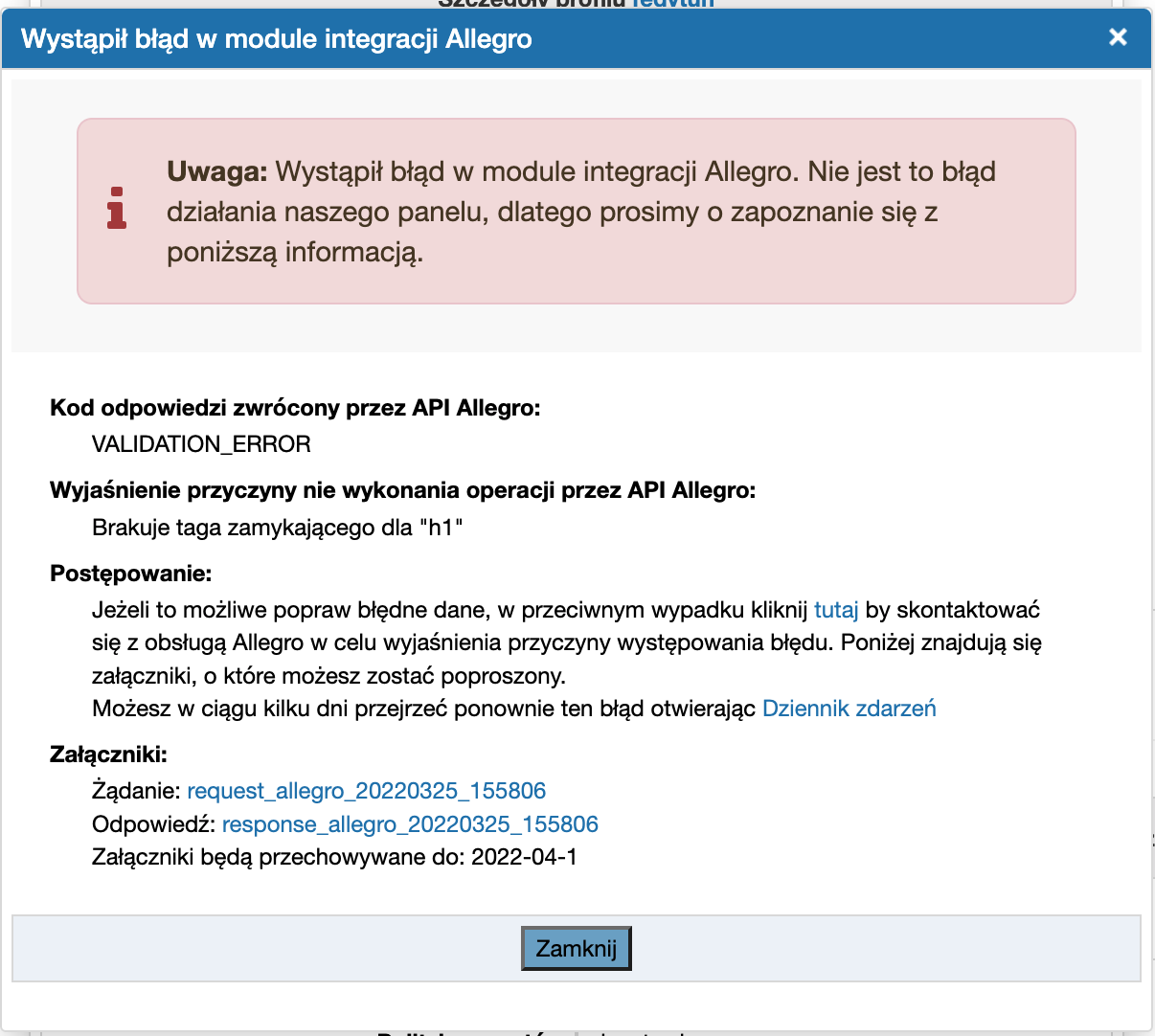 Zalecanym rozwiązaniem jest ustawienie innej treści w opisie dla sklepu i Allegro, żeby uniknąć duplikowania treści.